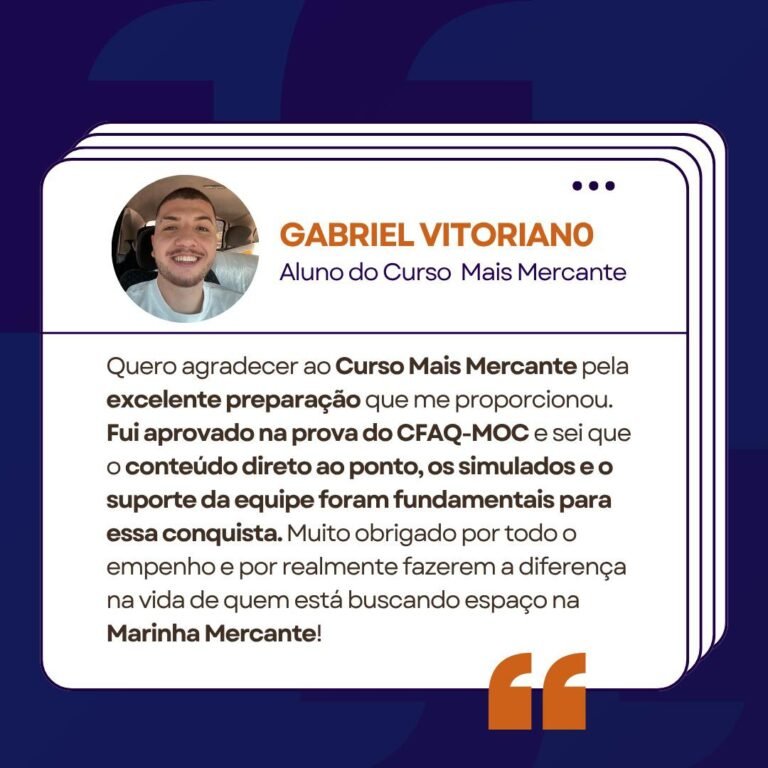 À frente do curso Mais Mercante, lidera uma equipe de professores especializados com a missão de democratizar o acesso à carreira marítima e preparar, com excelência, os novos profissionais que desejam embarcar rumo a um futuro de oportunidades.